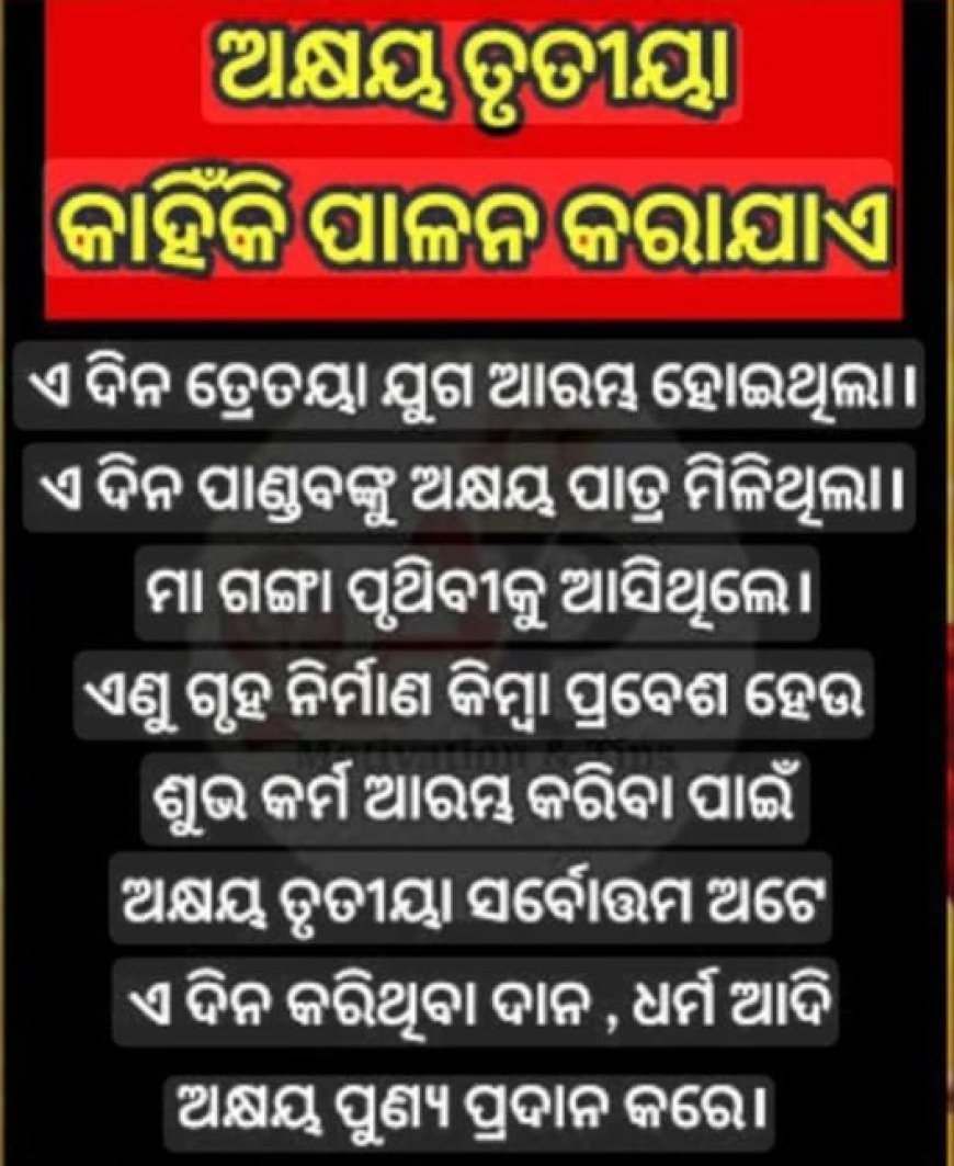 ଅକ୍ଷୟ ତୃତୀୟା ହେଉଛି ଅତ୍ୟନ୍ତ ପବିତ୍ର ଏବଂ ଶୁଭ ଦିନ।