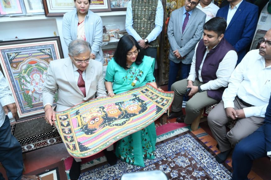 ଓଡିଶା ଗସ୍ତରେ ଆସିଥିବା ଭାରତର ମୁଖ୍ୟ ନିର୍ବାଚନ କମିଶନର ଶ୍ରୀ ଜ୍ଞାନେଶ କୁମାର ଆଜି କଳାଗ୍ରାମ ରଘୁରାଜପୁର ପରିଦର୍ଶନ କରି ସେଠାକାର କାରିଗରଙ୍କ ଦ୍ୱାରା ପ୍ରସ୍ତୁତ ନିଖୁଣ ପଟ୍ଟଚିତ୍ର, ଟସର ଓ କାଠ ଶିଳ୍ପ ଆଦି କଳାକୃତିର ପ୍ରତ୍ୟକ୍ଷ ଅନୁଭୂତି ନେବା ସହିତ କାରିଗରମାନଙ୍କ ସହ ଆଲୋଚନା କରିଥିଲେ । ପରିଦର୍ଶନ ସମୟରେ ମୁଖ୍ୟ ନିର୍ବାଚନ ଅଧିକାରୀ, ଓଡିଶା ଶ୍ରୀ ଆର ଆସ ଗୋପାଳନଙ୍କ ସମେତ ବରିଷ୍ଠ ଅଧିକାରୀମାନେ ଉପସ୍ଥିତ ଥିଲେ ।