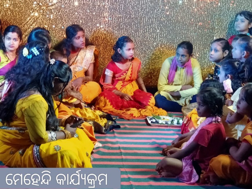 କୁମାରୀ ମାନଙ୍କ ଦ୍ୱାରା କୁଆଁରୀ ବିବାହର ପ୍ରାକ ପ୍ରସ୍ତୁତିରେ ମଙ୍ଗନ ଓ ମେହେନ୍ଦି...
