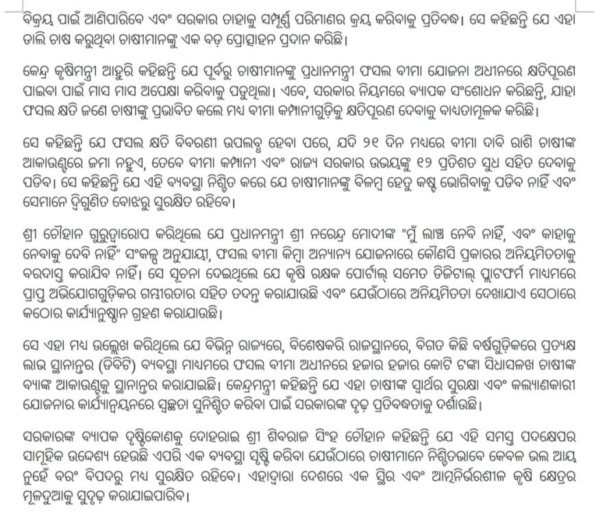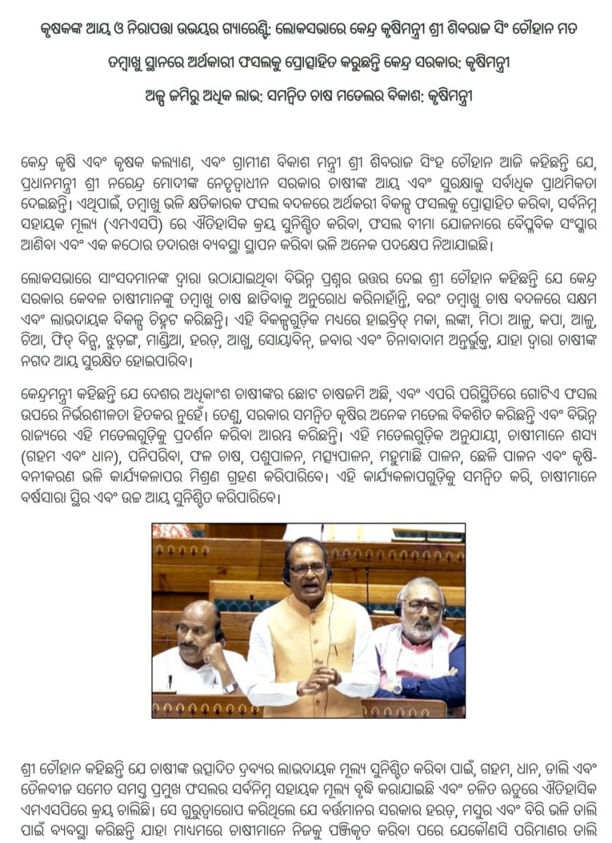 କୃଷକଙ୍କ ଆୟ ଓ ନିରାପତ୍ତା ଉଭୟର ଗ୍ୟାରେଣ୍ଟି: ଲୋକସଭାରେ କେନ୍ଦ୍ର କୃଷିମନ୍ତ୍ରୀ ଶ୍ରୀ ଶିବରାଜ ସିଂ ଚୌହାନ ମତ