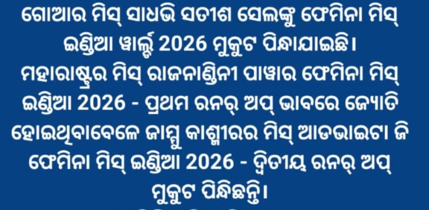 କିଟ ପରିସରରେ ଅନୁଷ୍ଠିତ ଫେମିନା ମିସ ଇଣ୍ଡିଆ ୨୦୨୬ର ବିଜେତା...