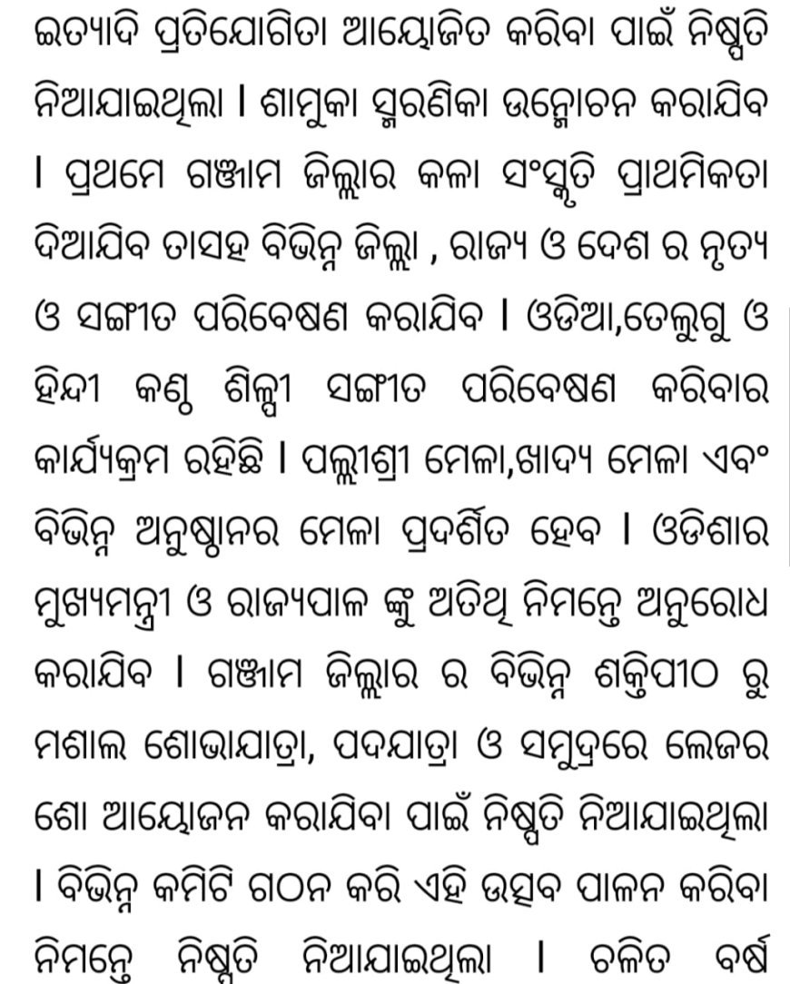 ବିଭିନ୍ନ ପ୍ରତିଯୋଗିତା ଯେପରି ଝୋଟି, ଆଲୋଚନା ଚକ୍ର , କବିତା ପାଠୋତ୍ସବ, ଭଲିବଲ୍, ଫୁଟବଲ,ବୋଟ ରେସିଂ