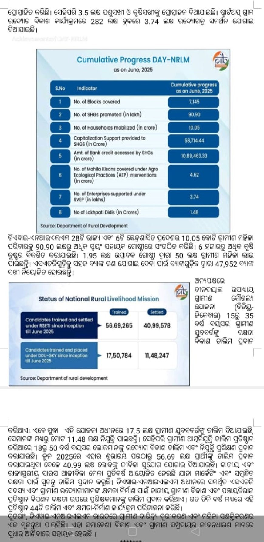 U ଡିଡିୟୁ-ଜିକେୱାଇ ଅଧୀନରେ 17.5 ଲକ୍ଷ ଗ୍ରାମୀଣ ଯୁବବବର୍ଗଙ୍କୁ ତାଲିମ ଦିଆଯାଇଛି, ସେମାନଙ୍କ ମଧ୍ୟରୁ ମୋଟ 11.48 ଲକ୍ଷ ନିଯୁକ୍ତି ପାଇଛନ୍ତି।