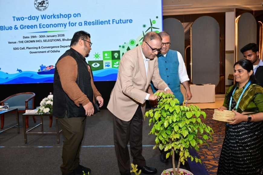 ରାଜ୍ୟ ଯୋଜନା ଓ ସଂଯୋଜନ ବିଭାଗ ସମନ୍ବିତ ବିକାଶ ଲକ୍ଷ୍ୟ ସେଲ୍ (ଏସ୍ଡିଜି ସେଲ) ଆନୁକୂଲ୍ୟରେ ସ୍ଥାନୀୟ 'କ୍ରାଉନ୍' ହୋଟେଲ ସମ୍ମିଳନୀ କକ୍ଷରେ ଆୟୋଜିତ ଏହି କର୍ମଶାଳାକୁ ରାଜ୍ୟ ଉନ୍ନୟନ କମିଶନର ତଥା ଅତିରିକ୍ତ ମୁଖ୍ୟ ଶାସନ ସଚିବ ଶ୍ରୀ ଦେଓରଂଜନ କୁମାର ସିଂ ଯୋଗ ଦେଇ ଉଦ୍ଘାଟନ କରିଛନ୍ତି । ଏହି ଅବସରରେ ଉନ୍ନୟନ କମିଶନର ଶ୍ରୀଯୁକ୍ତ ସିଂ ନୀଳ ଓ ସବୁଜ ଅର୍ଥନୀତି କ୍ଷେତ୍ରରେ କାର୍ଯ୍ୟ କରୁଥିବା ସମସ୍ତ ଅଂଶୀଦାରମାନଙ୍କୁ ଏ ଦିଗରେ ସମ୍ଭାବନାପ୍ରତି ଭଲଭାବେ ବୁଝିବା, ଏହାର ସୁଯୋଗ କିଭଳି ରାଜ୍ୟର ଆର୍ଥିକ ଅଭିବୃଦ୍ଧିରେ ସହାୟକ ହେବ, ସେ ସଂପର୍କରେ କାର୍ଯ୍ୟ କରିବାକୁ ପରାମର୍ଶ ଦେଇଥିଲେ । ପରିବେଶ ସୁରକ୍ଷାକୁ ଧ୍ୟାନ ଦେଇ ବିକାଶକୁ ସାଥୀରେ ନେଇ ସମୃଦ୍ଧିର ପଥରେ ଅଗ୍ରସର ହେବା ପାଇଁ ଏହି କର୍ମଶାଳା ସମସ୍ତଙ୍କ ପାଇଁ ଉପଯୋଗୀ ସାବ୍ୟସ୍ତ ହେବ ବୋଲି ସେ ଆଶା ପ୍ରକାଶ କରିଛନ୍ତି । ବିକଶିତ ଓଡ଼ିଶା ୨୦୩୬, ରାଜ୍ୟର ଦୀର୍ଘକାଳୀନ ବିକାଶ ଦୃଷ୍ଟିକୋଣକୁ ଲକ୍ଷ୍ୟ ରଖ୍ ଜଳବାୟୁ ସହନଶୀଳ ଏବଂ ସମାବେଶୀ ବିକାଶ ସଂପର୍କରେ ଏହି କର୍ମଶାଳାରେ ଗୁରୁତ୍ୱପୂର୍ଣ୍ଣ ଆଲୋଚନା କରାଯାଇଛି ।