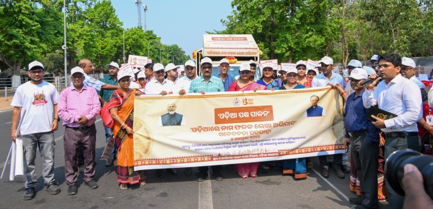 ଦୋକାନ ଓ ବାଣିଜ୍ୟ ପ୍ରତିଷ୍ଠାନରେ ଓଡ଼ିଆ ନାମଫଳକ ପ୍ରଦର୍ଶନ ପାଇଁ ସଚେତନତା ପଦଯାତ୍ରା...