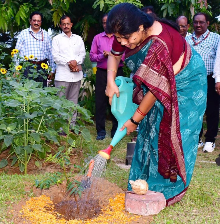 ପୃଥିବୀ ଦିବସ ପାଳନ ଅବସରରେ ରାଜ୍ୟପାଳଙ୍କ କମିଶନର ତଥା ଶାସନ ସଚିବ ଡ଼ ରୂପା ରୋଶନ ସାହୁ ମଧ୍ୟ ଲୋକଭବନ ପରିସରରେ ଚାରା ରୋପଣ କରୁଛନ୍ତି ।