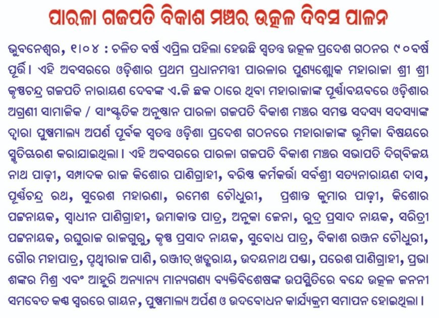 ପାରଳା ଗଜପତି ବିକାଶ ମଞ୍ଚର ଉତ୍କଳ ଦିବସ ପାଳନ