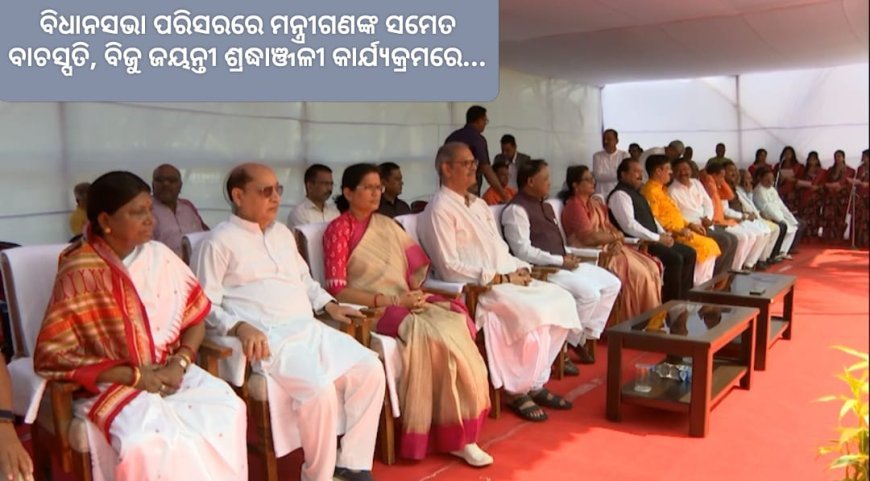 ପ୍ରବାଦ ପୁରୁଷ ବିଜୁ ପଟ୍ଟନାୟକଙ୍କ ରାଜ୍ୟସ୍ତରୀୟ ଜୟନ୍ତୀ ଅବସରରେ ଓଡ଼ିଶା ବିଧାନସଭା ପରିସର ରେ ସ୍ବର୍ଗତ ବିଜୁ ପଟ୍ଟନାୟକଙ୍କ ପ୍ରତିମୂର୍ତ୍ତୀରେ ଶ୍ରଦ୍ଧାସୁମନ ଅର୍ପଣ କରୁଛନ୍ତି ମୁଖ୍ୟମନ୍ତ୍ରୀ ଶ୍ରୀ ମୋହନ ଚରଣ ମାଝୀ,ବାଚସ୍ପତି ଶ୍ରୀମତୀ ସୁରମା ପାଢୀ,ଉପ ମୁଖ୍ୟମନ୍ତ୍ରୀ ଶ୍ରୀ କନକ ବର୍ଦ୍ଧନ ସିଂହଦେଓ, ଶ୍ରୀମତୀ ପ୍ରଭାତୀ ପରିଡ଼ା ଏବଂ ବିଧାୟକ ବୃନ୍ଦ ।