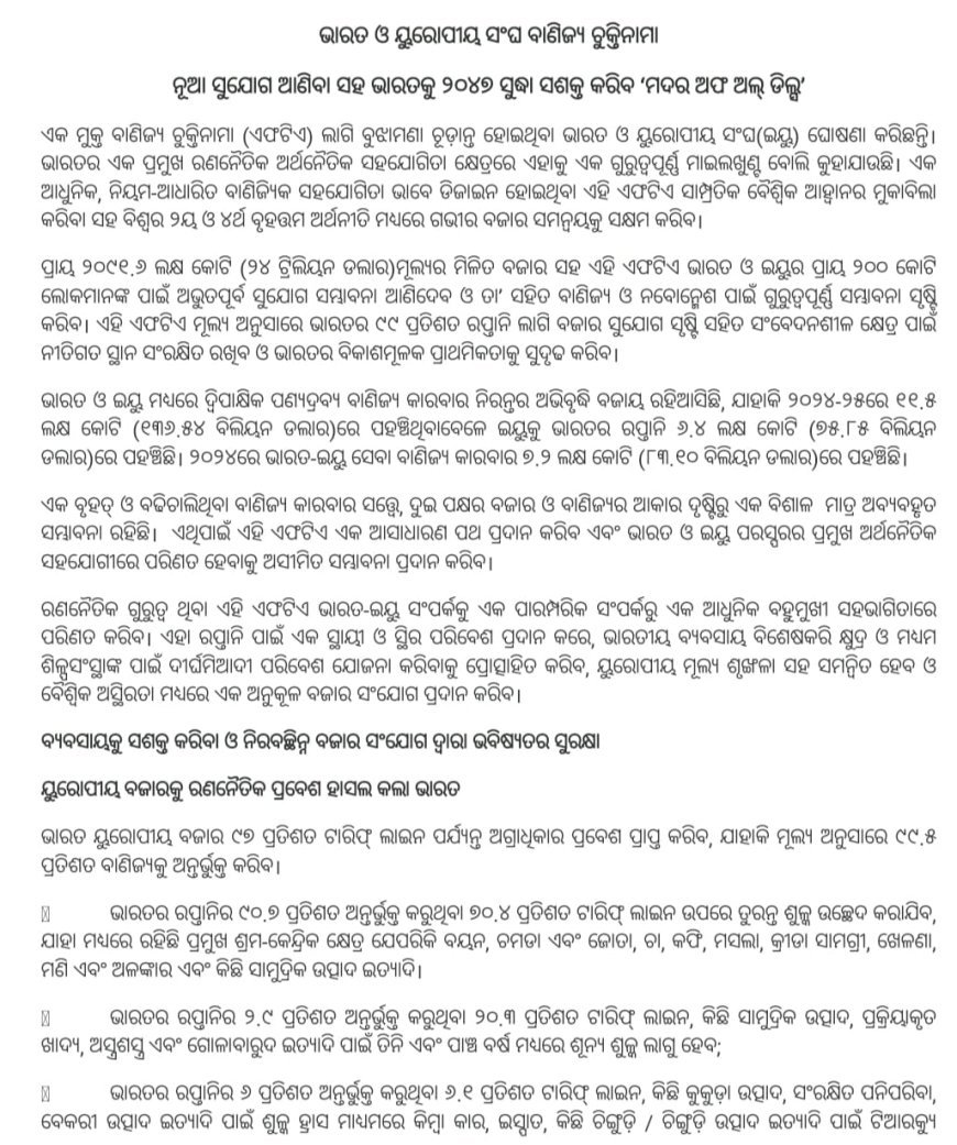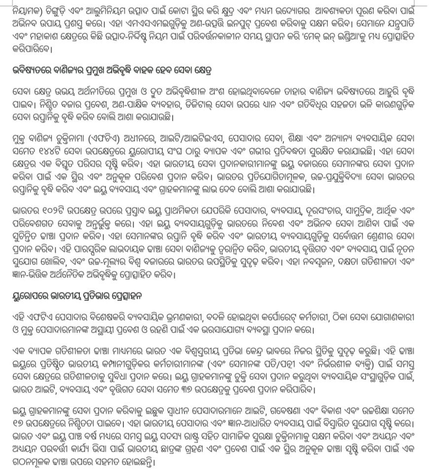 ଭାରତ ଓ ୟୁରୋପୀୟ ସଂଘ । ବାଣିଜ୍ୟ ଚୁକ୍ତିନାମା