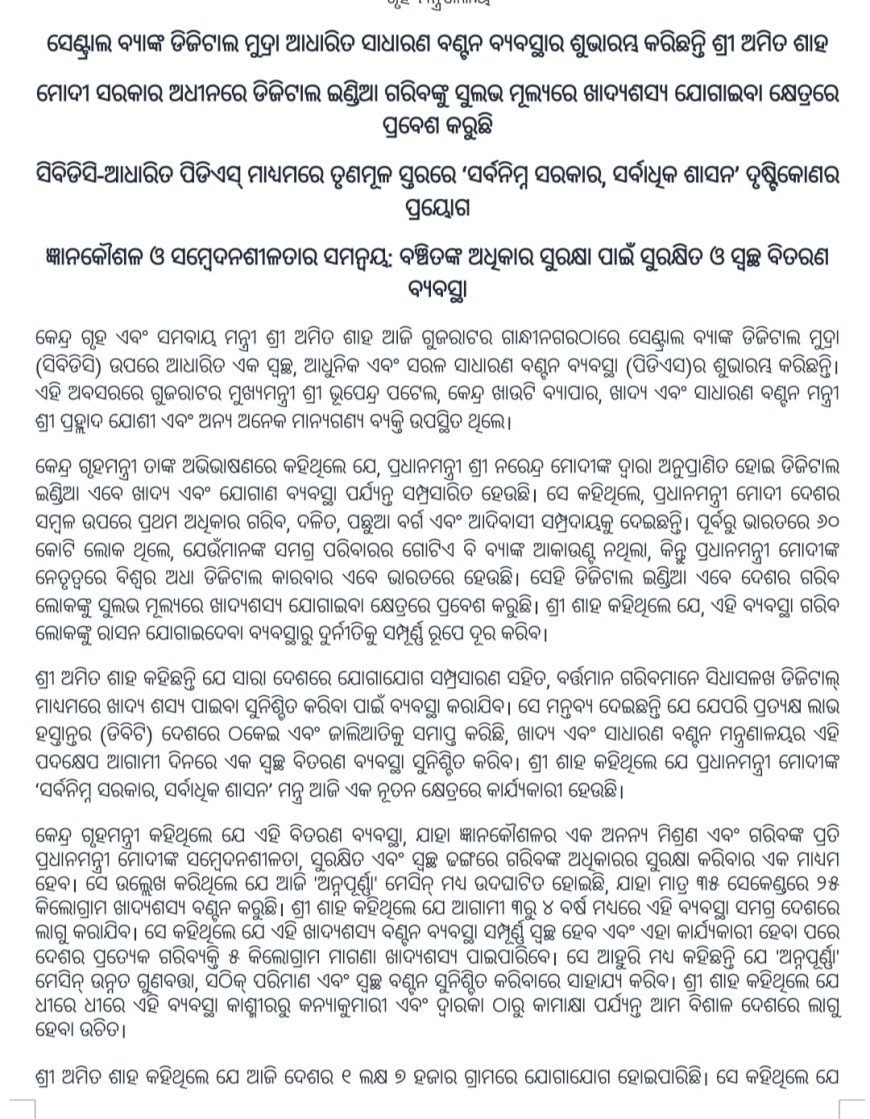 ସେଣ୍ଟ୍ରାଲ ବ୍ୟାଙ୍କ ଡିଜିଟାଲ ମୁଦ୍ରା ଆଧାରିତ ସାଧାରଣ ବଣ୍ଟନ ବ୍ୟବସ୍ଥାର ଶୁଭାରମ୍ଭ କରିଛନ୍ତି ଶ୍ରୀ ଅମିତ ଶାହ|