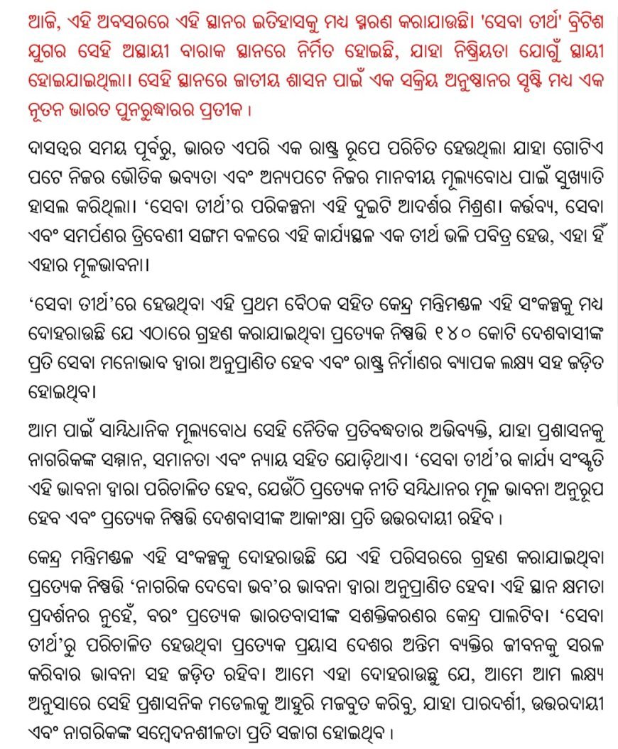 ‘ସେବା ତୀର୍ଥ’ରେ ପ୍ରଥମ କ୍ୟାବିନେଟ୍ ବୈଠକ