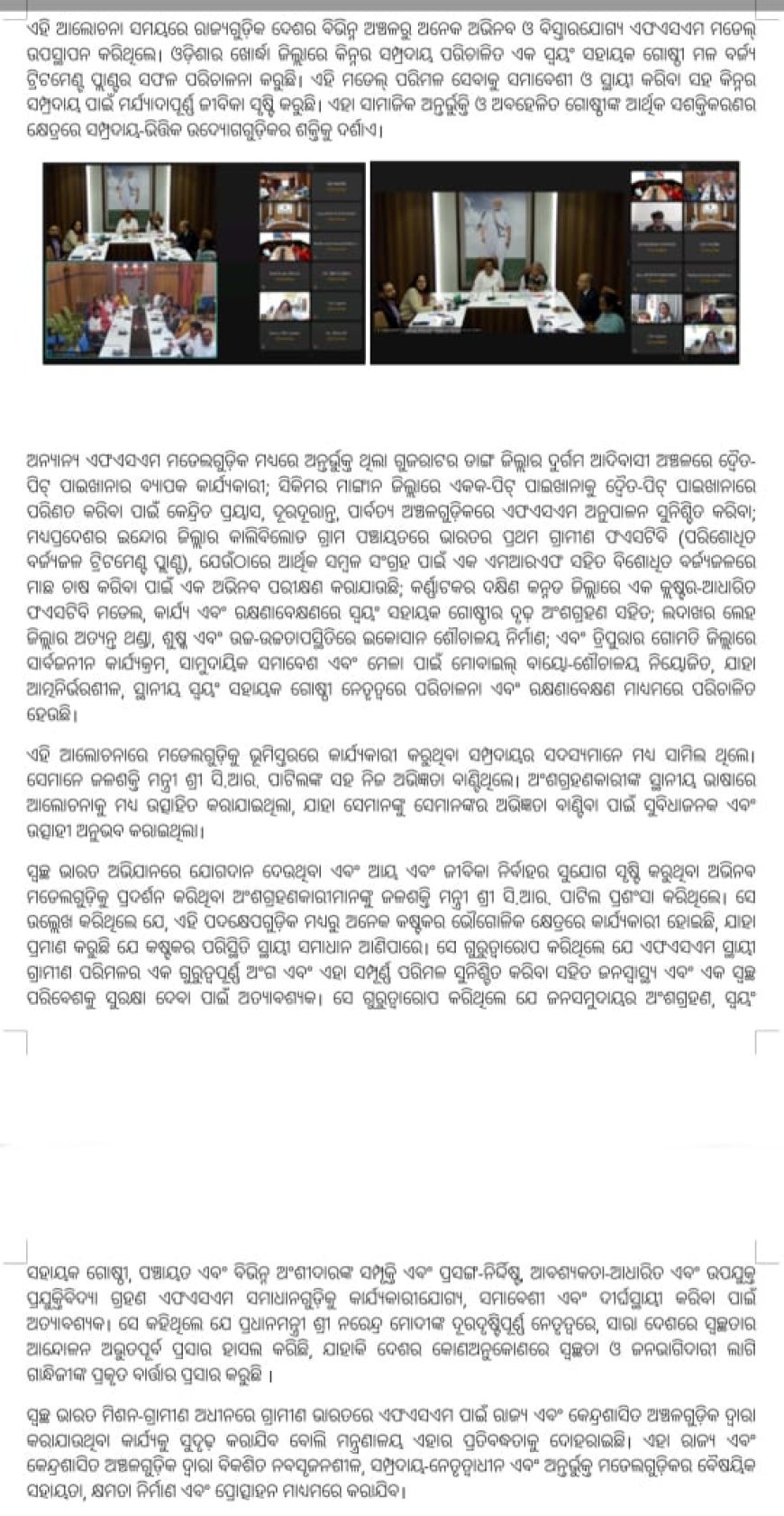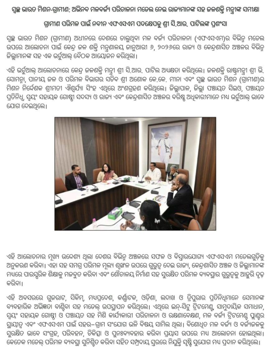 ସ୍ବଚ୍ଛ ଭାରତ ମିଶନ-ଗ୍ରାମୀଣ: ଅଭିନବ ମଳବର୍ଜ୍ୟ ପରିଚାଳନା ମଡେଲ ନେଇ ରାଜ୍ୟମାନଙ୍କ ସହ ଜଳଶକ୍ତି ମନ୍ତ୍ରୀଙ୍କ ସମୀକ୍ଷା