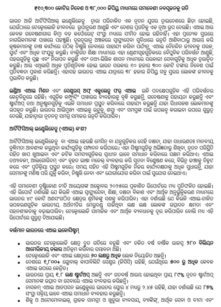 ୩୦୦ କୋଟିର ନିବେଶ ଓ ୩୮,୦୦୦ ଜିପିୟୁ ମାଧ୍ଯମରେ ସମାବେଶୀ ନବସୃଜନକୁ ଗତି