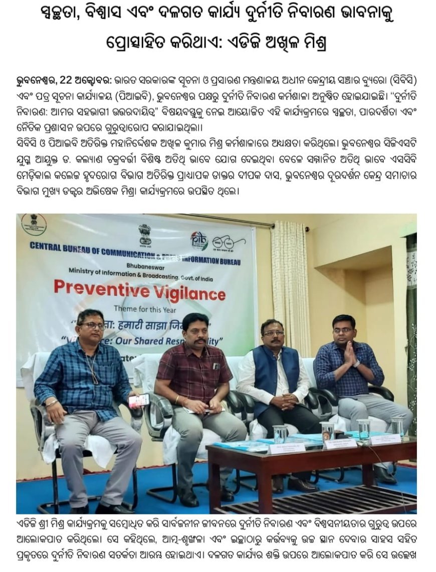 CBC ଓ PIB ପକ୍ଷ ରୁ ଦୁର୍ନୀତି ନିବାରଣ କର୍ମଶାଳ| ଅନୁଷ୍ଠିତ.